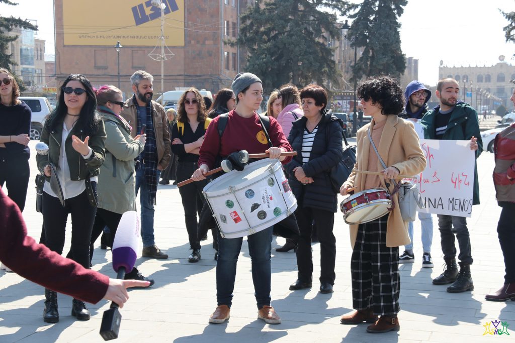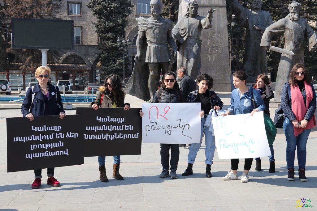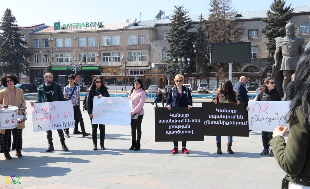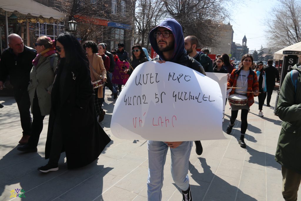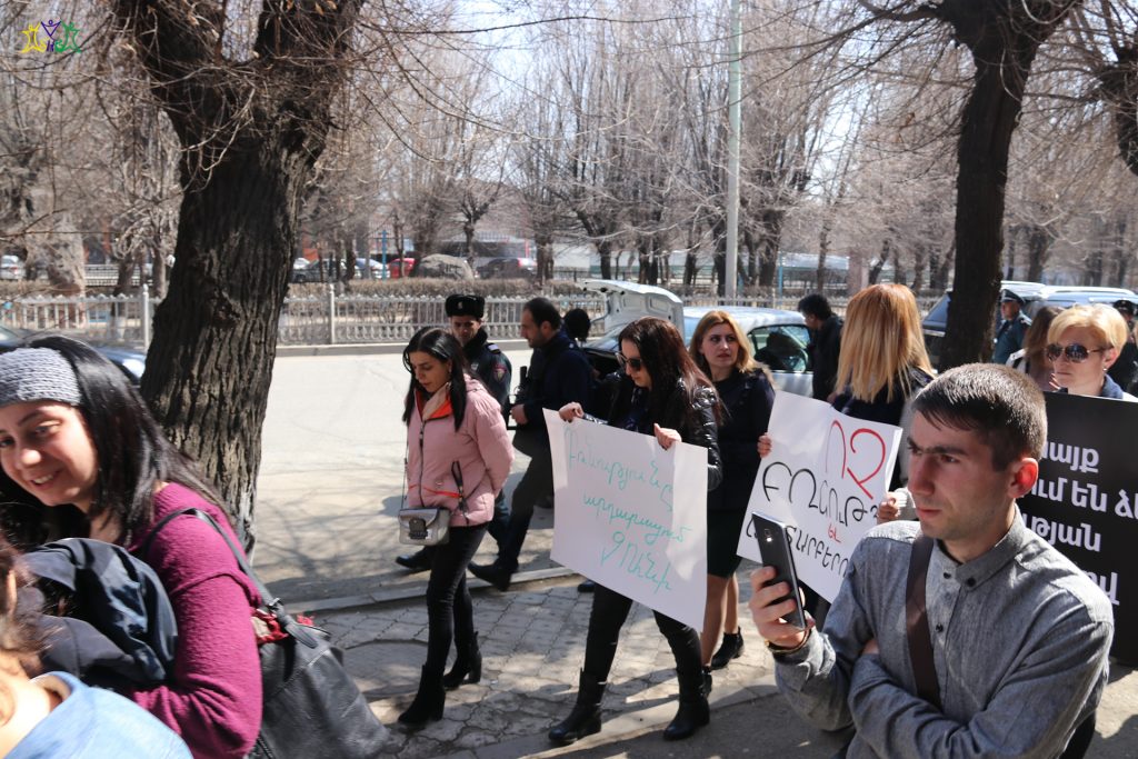 On March 9, representatives of the “Spitak Helsinki Group” human rights NGO participated in a march organized by the “Coalition to Stop Violence against Women”. Coalition members and a group of activists prepared posters and marched from the central square of Gyumri to the Prosecutor’s Office, then they marched through the central streets of Gyumri to the school where the 13-year-old girl studied, to the district where the crime took place.